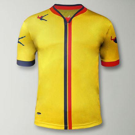 - Legea Trikot Beira gelb mit je einem senkrechten Streifen in blau und rot aus 100 % Polyester Polfresh
