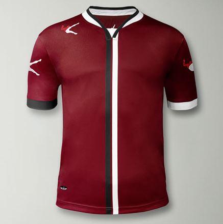 - Legea Trikot Beira weinrot mit je einem senkrechten Streifen in schwarz und weiß aus 100 % Polyester Polfresh
